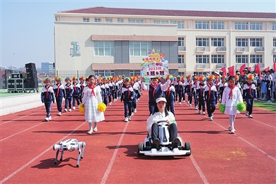 在青岛博文小学“艺体双修 共育未来”2025年春季田径运动会上,同时举行与青岛大学艺术学院的教学科研实践基地挂牌仪式,标志着学校与青岛大学艺术学院将携手同行、共育艺体英才。青岛博文小学是全国蹦床体教融合活力校园,46个班级以“践行十个一”为核心理念带来了精彩的入场式展演,全方位展现学校育人理念,彰显独特教育生态的活力。(青岛早报/观海新闻记者 杨健 摄影报道)