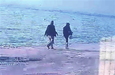马文利(右)边脱鞋边跑向坠海女子。