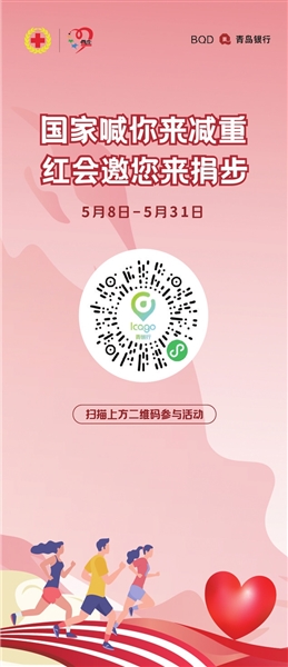 作为“矢志人道 携手同行”——2025年青岛市“红十字博爱周”微尘公益嘉年华的系列活动,青岛市红十字会联合市文明办、市卫生健康委、市体育局,以及爱心企业和市民等推出了“国家喊你来减重 红会邀您来捐步”爱心活动。从5月8日至5月31日,市民可扫码进入“青碳行”小程序,参与“国家喊你来减重 红会邀您来捐步”活动,小程序将自动统计每一位参与者的微信步数。每天,只要微信步数超过5800步,爱心企业中诚祥建设集团有限公司和爱心人士杨美然、杨美慈、王子熙就会替您向博爱卫生站项目捐款0.5元。活动结束后,将随机抽取100名市民,获得由“青碳行”提供的58元数字人民币。截至目前,活动已有5000多人参与,累计步数3000多万步,累计捐出公益金1000多元。