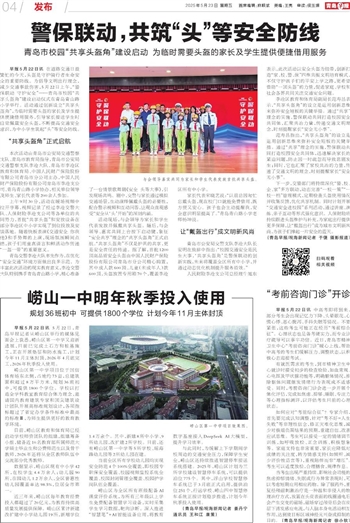 与此同时,为缓解上下学期间学校周边的交通安全压力,保障学生安全,崂山区还持续推进智慧停车接送系统搭建。2025年,崂山区计划为三所学校建设智慧停车系统,可以提供泊位775个。其中,浮山学校智慧停车系统已于3月底正式启用,提供泊位251个,行远学校、崂山四中智慧停车系统正按计划稳步推进,计划今年秋季投入使用。