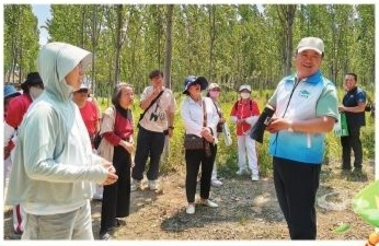 卜钦龙(蓝色马甲)向游客普及艾草知识。