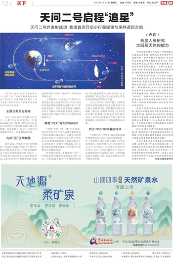 天问二号是中国行星探测工程的最新进展,此前天问一号已成功探测火星。英国伦敦大学学院空间和气候物理系教授安德鲁·科茨评价,“天问”系列任务是“一系列勇敢大胆的太空探索项目”,涵盖了前沿行星科学的多个方面,探索结果将补充现有的科学知识。本版文图据新华社