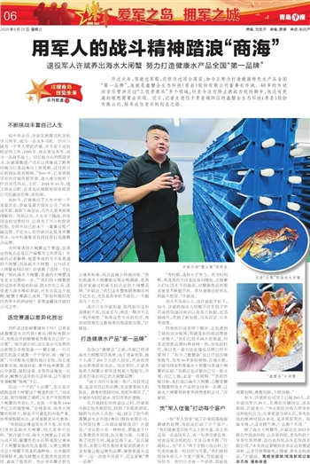 开过火车,驾驶过军舰,还担任过国企高层,如今正努力打造健康特色水产品全国“第一品牌”,他就是鑫蟹会生态科技(青岛)股份有限公司董事长许斌。48岁的许斌坦言尽管涉足过“工农学商兵”多个领域,但至今没有停止挑战自我的脚步,他还有更高的理想需要去实现。近日,记者走进位于青岛城阳区的鑫蟹会生态科技(青岛)股份有限公司,探寻这位老兵的创业之路。