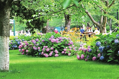 沿着蜿蜒的小径前行,便能邂逅那一片片肆意绽放的绣球花海,它们的花球硕大,由无数精致的蝶形小花簇拥而成,颜色更是绚丽多彩,蓝色、粉色、白色、红色、紫色……在这个美好的夏日,不妨来青岛中山公园,漫步在绣球花海中,感受这份限定的浪漫,用相机定格美好瞬间。