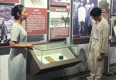 讲解员向参观者讲述周浩然烈士遗物背后的故事。