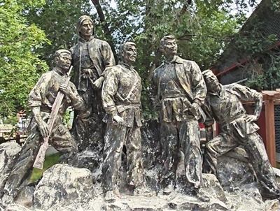 “高平路上五虎将”的雕像。