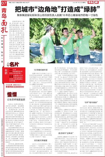 在城市的各个角落,总有这样一群人,他们默默耕耘,用辛勤的汗水打造出一片片美丽的绿色空间,33岁的赵鹏就是其中的一员。从一名热爱花鸟鱼虫的少年到一线绿化工人,再到青岛聚泰城市服务集团有限公司绿化板块浮山项目部负责人,赵鹏用16年的坚守与钻研,将热爱化为行动,以匠心雕琢城市的每一寸绿色。赵鹏在一项项工作中均充满干劲,都交出了令人满意的答卷,展现出远超同龄人的技术热忱与钻研精神。