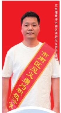 7月12日在燕岛山公园附近,一名17岁少年不慎落入海中,情况十分危急。千钧一发之际,一位身穿白衣的男子挺身而出,不顾个人安危跳入海中,将少年救助上岸。成功将人救上岸后,这位“白衣大哥”只是摆了摆手,让围观群众帮忙救助溺水少年,未留下只言片语就离开了。近日,在青岛相关部门的努力找寻下,终于找到了救人者,他就是王良伟。昨日下午,青岛市委政法委、市见义勇为基金会联合市南区委政法委、区见义勇为协会,向王良伟颁发了市、区两级见义勇为模范荣誉证书和奖金。