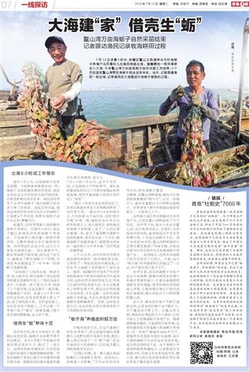 冯丙雪介绍,因为今年闰六月,根据以往的经验,海蛎子采苗期不得不向后推迟。本应6月底7月初就必须放吊绳采苗的日子,推迟了一周左右。这种传统的养殖技术,只有经验丰富的老渔民才能做到精准把握。传统的海蛎子育苗以海洋中的藻类和微生物为食。根据青岛的海水温度和海洋生物自然规律,每年从7月1日到7月15日,这半个月时间,正是海蛎子产卵的季节。他们会把提前准备的几十万根养殖绳运到养殖海域,等待大量海蛎子幼苗在扇贝壳上“安家”。