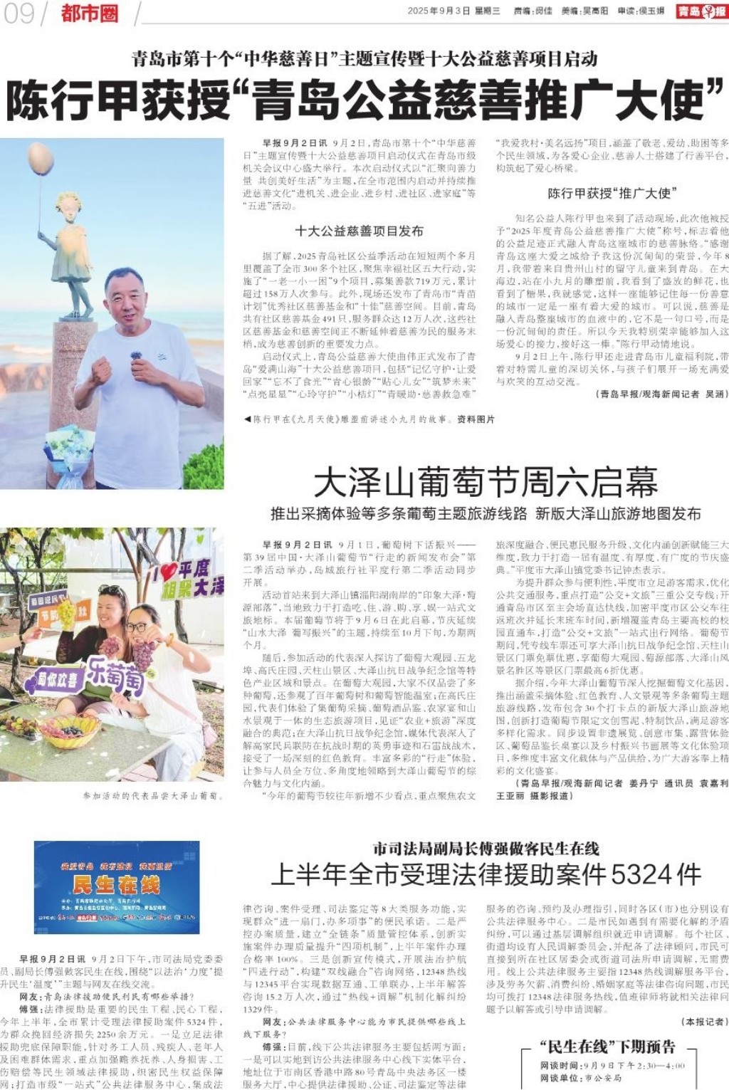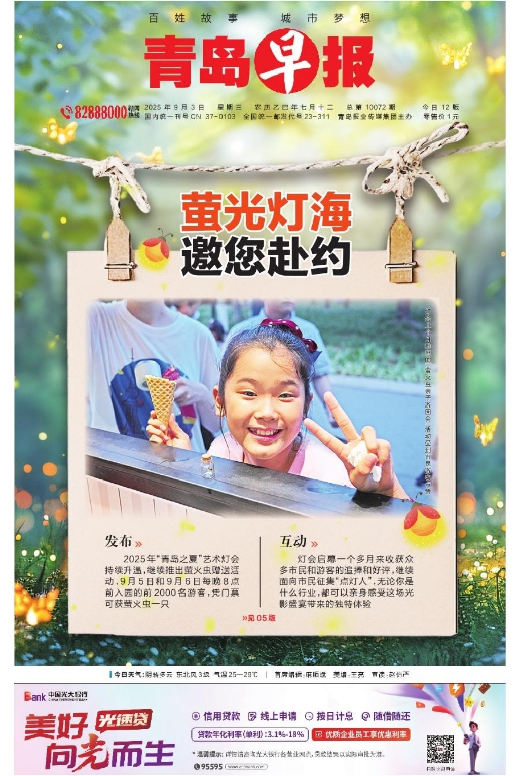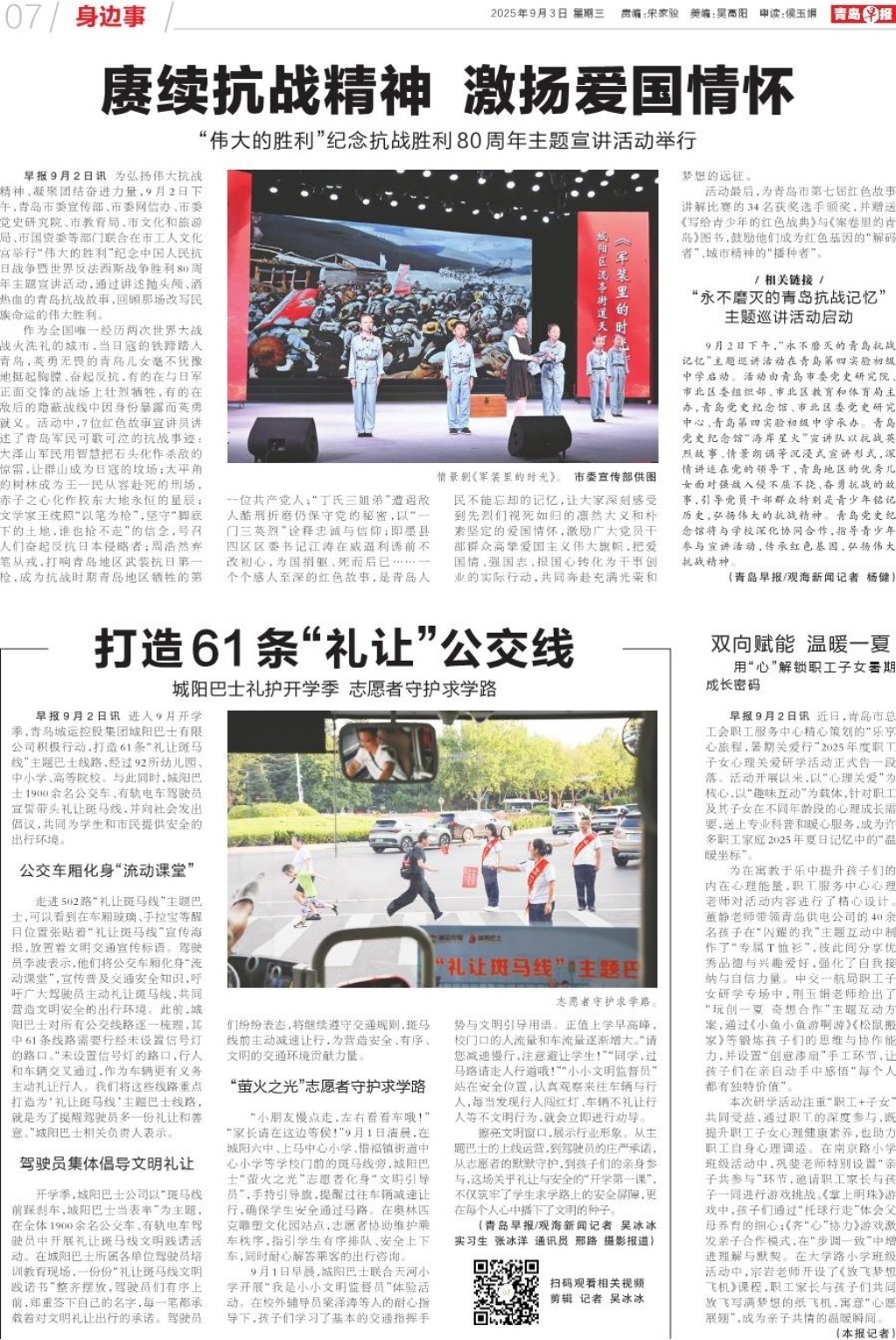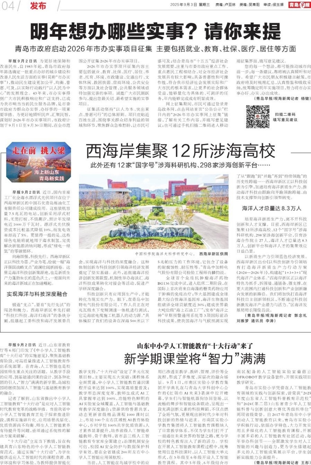 A01 头版 A02 加快城市更新建设 提升市民生活品质 A03 爱军之岛 拥军之城 A04 发布 A05 2025年青岛之夏 艺术灯会 A06 今日看点 A07 身边事 A08 深读 A09 都市圈 A10 文娱 A11 教育周刊 A12 天下