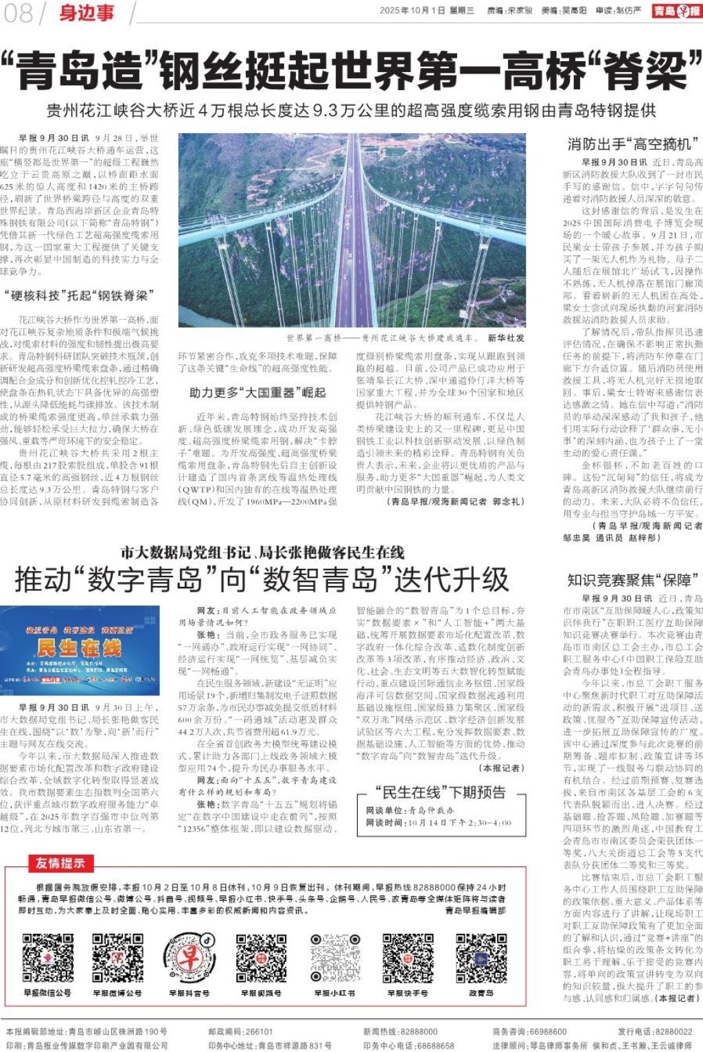 “青岛造”钢丝挺起世界第一高桥“脊梁”