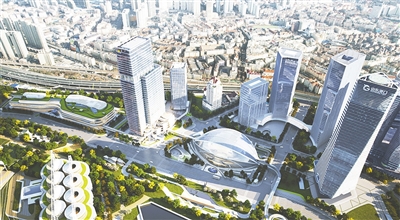 青岛国际邮轮港区启动区效果图。