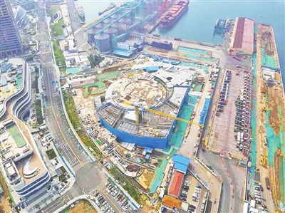 青岛国际邮轮港区二号码头及配套工程现场一派繁忙。环海湾集团供图