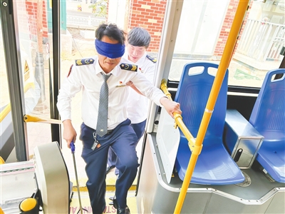 驾驶员蒙眼体验换位感受视障乘客出行。