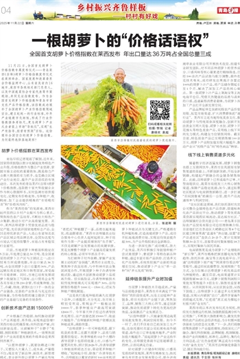 “以前种胡萝卜,既要依赖进口种子,又要投入大量人工,成本高、产量稳不住;现在有了新品种、新技术、新管理模式,农业新科技让胡萝卜产量比传统‘老把式’种植翻了一番,品质也越来越优,收益跟着涨。”莱西市店埠镇农业综合服务中心负责人赵树起坦言,种子培育作为第一产业提质增效的“先手棋”,不仅是破解产业发展痛点的关键举措,更是支撑整个胡萝卜产业链高质量发展的核心根基,必须牢牢抓在手中。