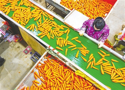 莱西市店埠镇村民在对胡萝卜进行清洗、分装。张进刚 摄