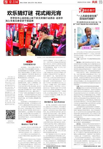 2月14日上午,市军休服务中心第二届元宵灯谜会,在四个分中心13个院区多个集中服务点线上线下同步举行。活动现场热闹非凡,一盏盏喜庆的灯笼挂满大厅,一张张彩色的谜条写满各色谜语。军休二分中心的军休干部和工作人员欢聚一堂,猜灯谜,闹元宵,共同感受节日的气息。扫码倾听本版有声新闻