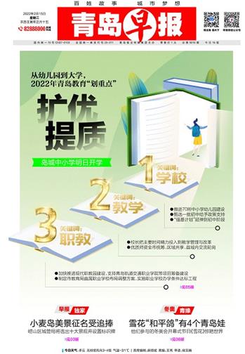 青岛早报 头版 A01 2022-02-151 2022年02月15日 星期二