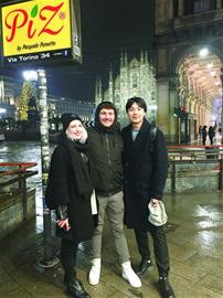 2018年,项之遴(右)在米兰大教堂和刚认识的意大利朋友合影。 本人供图