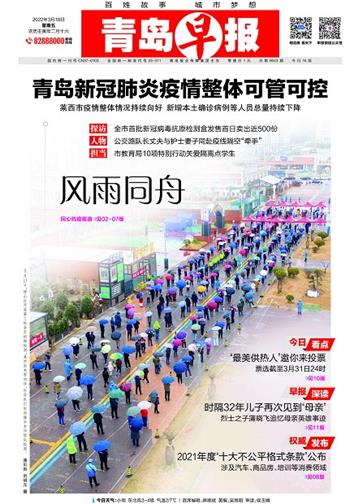 青岛早报 头版 A01 2022-03-181 2022年03月18日 星期五