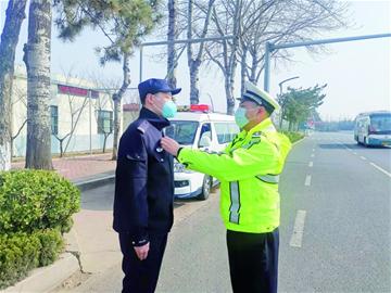 早报3月18日讯 在岛城抗疫一线上,有一对党员“父子兵”,父亲是市公安局交警支队民警崔亮,儿子是市公安局崂山分局民警崔家瑞。
