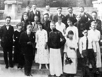 青岛戏剧文学的早期文本并非在青岛写下,但是紧紧关联着青岛。它刊载于《现在之青岛》的创刊号上,1914年9月由民新社在上海印行,作者欢僧为该杂志的主笔之一。该刊所设栏目有论说、专电、译丛、杂录、小说、新剧、专件等,内容倾注于青岛各方面的状况。刊载文章也以日德战争的战事进程为主,刊录有《避乱纷纷赴天津》《青岛妇孺庆安全》《胶济列车停止之传说》等,也有介绍青岛发展脉络的文章,比如《青岛之过去与将来》。1919年《Rainbow》演出合影。