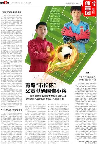青岛早报 体育风 A12 2022-03-301 2022年03月30日 星期三