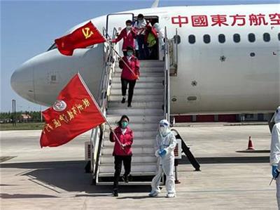 早报5月27日讯 5月27日13点44分,随着东航MU7117上海浦东-青岛包机航班降落在胶东国际机场,青岛胶州市援沪医疗队圆满完成支援上海抗疫任务,百余名“大白”乘坐包机返回青岛。