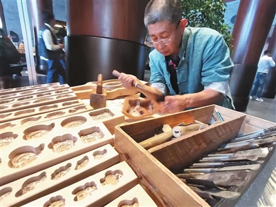 木屑纷飞之间,一块普通的梨木,就变成栩栩如生的“饽饽榼子”。“既是展示也是传承,还能通过交流‘吸粉’,获得更多的回头客,带动线上线下联动消费。”葛村榼子非遗传承人王丕文说。