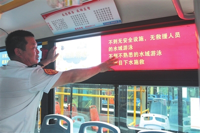 吴绍爱将防溺水知识以漫画的形式张贴在车厢内,以提醒乘客提高安全意识。在公交车厢展板和灯箱片位置,防溺水宣传画格外显眼,溺水的自救方法、同伴落水怎么办、什么是危险区域……一幅幅图片引来不少乘客围观。“每年到了这个时候,溺水事件就成为学校、家长和社会共同担心的问题。在公交车厢里开展防溺水安全教育,内容通俗易懂,便于孩子们掌握急救知识和预防溺水技能。”乘客赵女士表示,这些漫画不仅可以让孩子学到相关知识,也有助于家长们掌握急救知识和预防溺水技能,进而教会孩子在关键时刻如何自救和他救。