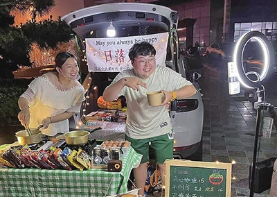 “其实‘练摊儿’确实挺辛苦的,一站就是一晚上,尤其现在到了夏天,站在锅边5分钟就出了一身汗。出摊前两个小时就要做准备工作,烧好热水装进桶里,把冰块取出来放进箱子,将各种食材、方便面以及桌子、凳子、盘子等装车。”董悦欣说,在出摊过程中也发生了许多温暖人心的故事。“刚开始摆摊那阵儿,有天晚上生意不好,直播间的一名大哥为了鼓励我们,专门打车从很远的地方过来点了一碗面吃。而且当时因为刚起步,还没有把东西置办全,没有凳子,大哥就蹲着把面吃完,当时真是把我们感动哭了。这名大哥给了我们莫大的鼓舞,也成为了我们的终身‘免单’顾客。”董悦欣笑道,“有名唱歌特别好的女粉丝连续几天来我们摊上驻场,用天籁般的嗓音帮我们吸引客人,这些都是我们两个心中珍藏的温暖。”