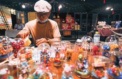 古早市集融合了非遗手造、酷乐潮玩、曲艺相声、萌宠周边、原创音乐、回流美器、陶瓷文创、古早美食、艺术家居等等,将各种文化及文创业态深入崂山“夜生活”,做到“文创进社区、文化近百姓”,丰富周边社区百姓文化生活。