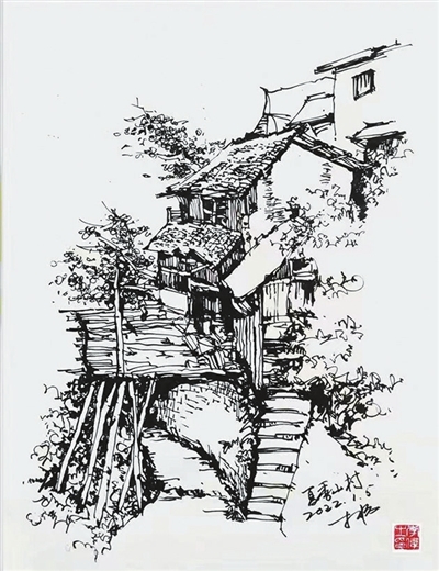 钢笔画 姜桂芬 65岁 市北区老年大学