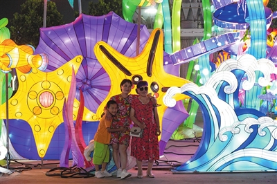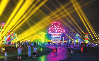走进金沙滩啤酒城,星光大道两侧的4个海洋主题拱门灯组引人注目。北边两组拱门以卡通造型的贝壳、水母为主元素,搭配海星、海马等元素设计而成。南边两组则以《山海经》中的“鲲”“文鳐鱼”等为主元素,设计出极具中国风的珊瑚造型彩灯拱门。各式各样的彩灯造型优美、装饰考究、做工精细,一走进啤酒城就犹如漫步在一个奇妙的梦幻世界里。