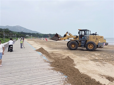 除了每天保安巡查、环卫工人保洁外,石老人海水浴场每周还要安排10次“筛沙”工作。“我们的‘筛沙’工作都是避开游客游玩的高峰期,一般是在清晨开展。”孙安振说。