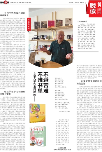 孩子们不要只读当下的新作品,更要读经典,读那些经过时光和历史考验的老作品,“儿童文学具有明显的分界线,针对不同年龄层孩子的定位一定要相当准确,给两岁孩子和给四岁孩子写的内容不一样,给五六岁孩子写的文本,与给十四五岁孩子写的更不同,而对于后者,除了快乐,苦难绝对是应该进入孩子视野的内容了。”