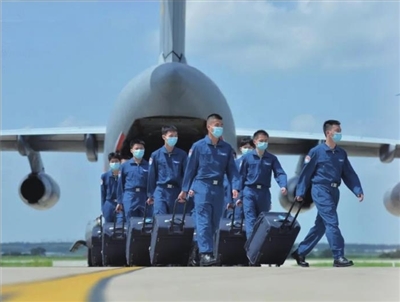 7月31日和8月1日,按照“区域集中、就近就便”原则,空军在石家庄、济南、南京、长沙、成都5个城市设登机点,派出数架运-20飞机集中运送新录取飞行学员到空军航空大学报到。这是空军首次使用国之重器“鲲鹏”执行运送飞行学员入校任务。