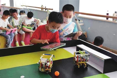 早报8月2日讯 8月2日,青岛市妇女儿童活动中心与青岛市科技馆联合主办的“2022年青岛市少年儿童机器人交流活动”在青岛市妇女儿童活动中心举行。本次交流活动有来自市南区、市北区、崂山区等区市的近500名少年儿童参加。记者了解到,活动共设立了《“天眼”结构搭建》《机器人点球射门》和《星际能源争霸》三个适合5-12岁少年儿童参与的趣味性和竞争性结合的活动项目,展示少年儿童的创意建构能力、实时操控能力、团队合作能力等。