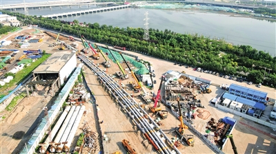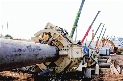 早报8月10日讯 在市北区镇平路海底管线陆对海定向钻施工现场,吊臂耸立,总长1402米、总重1400余吨的长管线在800吨推管机和海上作业船舶协同作业下,缓缓地进入地下,向着胶州湾海底的目标点挺进。在经历了90个小时连续作业后,于10日下午3时顺利完成穿越,实现了国内大口径城镇燃气管线工程建设的多项技术突破。