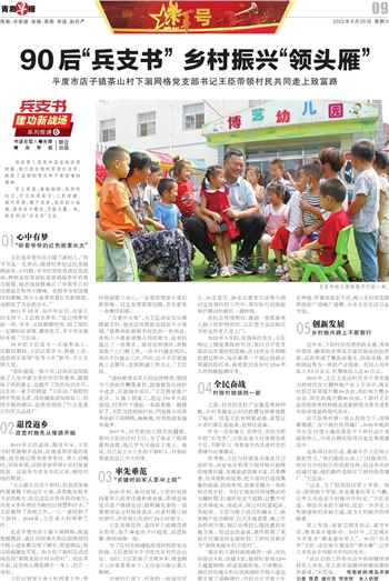穿上军装,保家卫国多奇志,离开军营,服务家乡建新功。2021年,王臣被评为平度市“最美退役军人”。90后“兵支书”王臣,这位家乡建设的“领头雁”,让军人本色在乡村振兴中闪闪发光。
