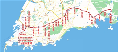 青岛地铁4号线自人民会堂站至大河东站,全长约31公里,共设25座地下车站。线路途经市南海滨区、崂山风景区、青岛大学附属医院、青岛市立医院、市实验初中、市实验小学,连接起8家医院、11所学校及多处热门景点,覆盖人口密集区和客流集散点,是第一条贯穿市区中部的东西向骨干线路。4号线在人民会堂站与3号线换乘,在观象山(市立医院)站与1号线换乘,在泰山路站与2号线换乘,在海泊桥站与1号线换乘,在错埠岭站与3号线换乘、在辽阳东路站与2号线换乘,在张村站与11号线换乘,是青岛地铁线网中“贯穿东西、四通八达”的“金腰带”。