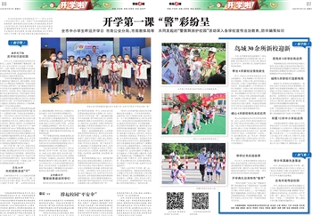 ~~~全市中小学生昨迎开学日 市南公安分局、市南教体局等共同发起的“警旗飘扬护校园”活动深入各学校宣传法治教育、防诈骗等知识