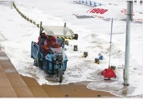 早报9月5日讯 受今年第11号台风“轩岚诺”影响,5日中午,沿海一线出现大浪,特别是市南区澳门路沿海一线,出现海水倒灌现象。市南交警紧急发布提醒,请停靠在澳门路一线的车辆车主尽快将车辆转移,并对沿海一线部分道路采取临时管制措施。记者在澳门路附近看到,很多市民在安全区域拍摄大浪。