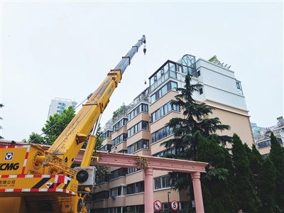 工人楼顶拆违。