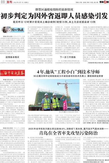 截至目前,葛志明牵头的“双优化”荣获国家级QC成果1项、省部级QC成果1项、省部级工法1项、国家专利3项,项目和班组还获得了“青岛市安全文明标准化示范工地”“青岛市工人先锋号”“青岛市西海岸新区创新型班组”等荣誉称号。(观海新闻/青岛早报记者 张孝鹏 通讯员 李定邦 摄影报道)