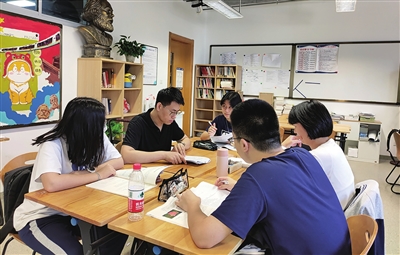 讲课是很见功力的事情,如何寓社会生活于课堂,如何为教案和课件精心搜集丰富素材,如何让学生完全学到,尤其在当下新高考新课标要求下,这其中每一步都要详细分析和拆解。但尚乃期始终坚定地认为,这对热爱思考、热爱创新又年轻向上的政治学科组来说,恰恰是优势和机遇。最近学习的“薪火相传有继承”一课,5例典型的家庭遗产继承纠纷案例巧妙地搬上了课堂的“舞台”,学生们是有备而来的导演、话剧演员,这场课堂话剧“病房外的闹剧”将真实情境呈现在学子身边,通过生活化的体验将知识精准分析和吸收;高二哲学通论部分其中一课,探讨“庄周梦蝶的意境与人生态度”,由同学亲自绘画这样一幅作品,大家沉浸在画作、诗词、纪录片中,穿梭于遥远的哲学长河去思索和探究。