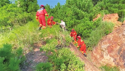 由于山体陡峭,杂草丛生,救援难度较大,期间,消防救援人员进行轮换,防止因体力不足发生意外。经过一个小时左右的救援,来自天津的3名游客被营救到安全区域。救援人员询问得知,3人在退潮时来到“网红洞”附近的礁石上游玩,因为不熟悉潮汐情况,未注意到海水上涨,被困在了礁石上。
