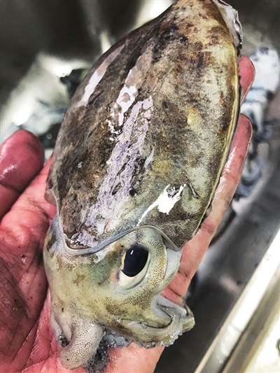 眼下,正是青岛近海垂钓金乌贼(下图)的季节,金乌贼属于软体动物,俗称墨鱼、乌鱼。每年9月—11月,金乌贼便会大量出现在青岛的近海海域及胶州湾内,吸引钓友前来垂钓。