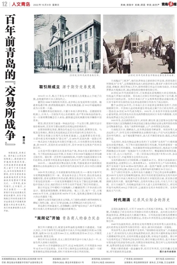 1920年元旦刚过,日本派驻青岛的统治机关——青岛守备军司令部再提筹建取引所一事。青岛商务总会上书反对,指出青岛商业规模有限,没有设置取引所的必要;期货交易会引发投机行为,不利于青岛经济发展……日商支持筹建取引所是为了强化经济侵略,哪怕中国商人反对,他们仍在日本军方支持下促成了取引所的建立。