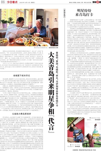 闲暇之余,黄晓明专程到老城区来“打卡”,“早就想去这些地方看看了。”黄晓明坦言,最近一段时间,总是听身边的朋友、亲戚说起青岛老城区的变化,而作为一名青岛人,他也想用自己的方式为青岛、为老城做点宣传,让更多的人了解青岛、看到青岛。